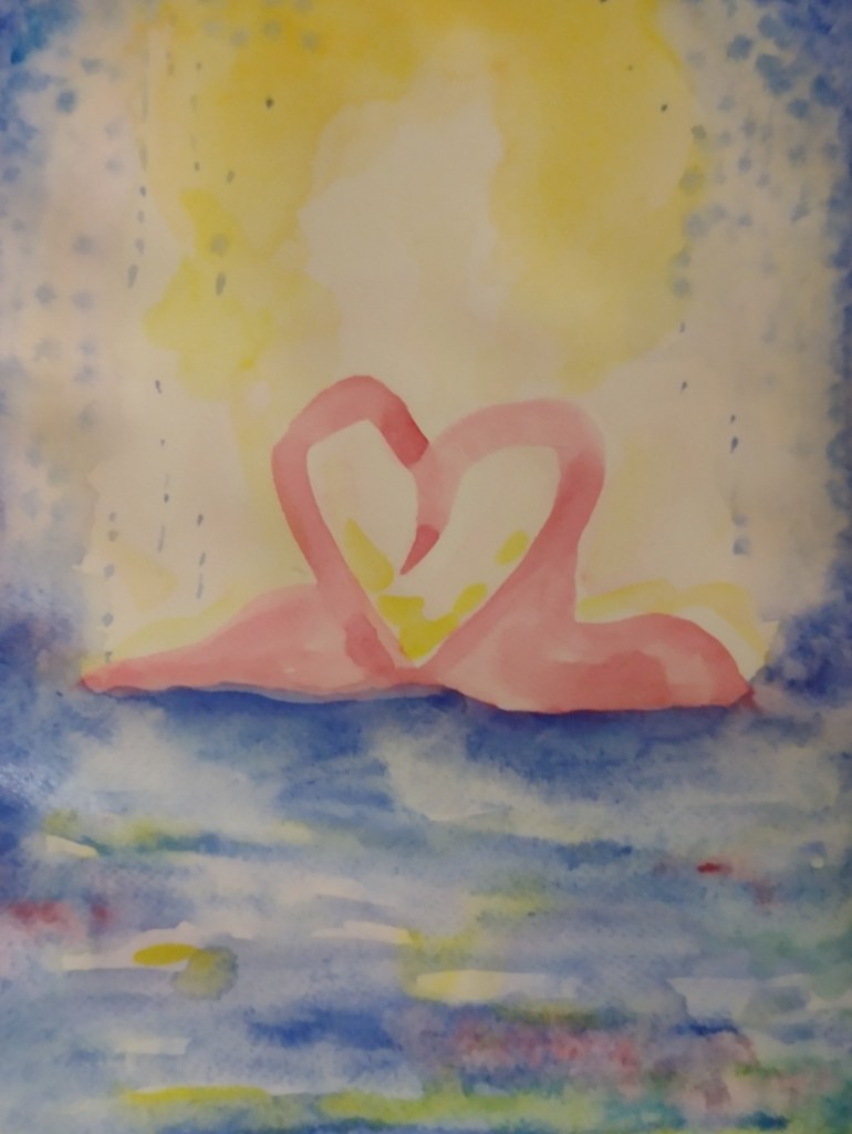 (Artikkelin kuva valikoitui muuten ihan syystä, sillä se johdatteli minut täydenkuun tunnelmaan prosessillaan ja on hyvä esimerkki täydenkuun maanläheisestä tai’asta! Otin lauantai-iltana vesivärit esiin, ja tuli mieleeni maalata paperille sydän. Juu, siis taidettahan tässä tehdään… Nolotti vähän, vaikka yksinäni maalailinkin. Mutta ihana, hempeä ja kepeä innoitus vei pensseliä! No, siitähän tuli kuin kaksi joutsenta, klassisesti kaulailemassa. Nolotti taas, eihän nyt itseään taiteilijaksi kutsuva voi tällaista kitchiä tuottaa, ja jos tuottaakin, se pitäisi ainakin tehdä hyvin, teknisesti taitavasti. Ei harrastelijamaisen latteasti, lepsusti. Tai ei ainakaan tosissaan, vähintään vähän sarkastisesti! Huvitutti, kun tämänkaltaiset ajatukset pyörivät päässäni samalla kun nautin suunnattomasti maalaamisesta, pastelliväreistä ja nimenomaan tällaisen hupsun ja geneerisen joutsenkuvan tekemisestä. Miksipäs ei! Siitä tuli hieno, ja minulle se avasi juurikin tuon oven romantiikan ja käytännön tekemisen (maalaaminen, ei vain inspiraatio) välillä, luoden elämääni muutenkin hyvää energiaa, uutta tilaa ja mahdollisuuksia toteuttaa itseäni. Usein astrologisen energian taika asuu ja näkyy nimenomaan näissä pienissä asioissa! )
